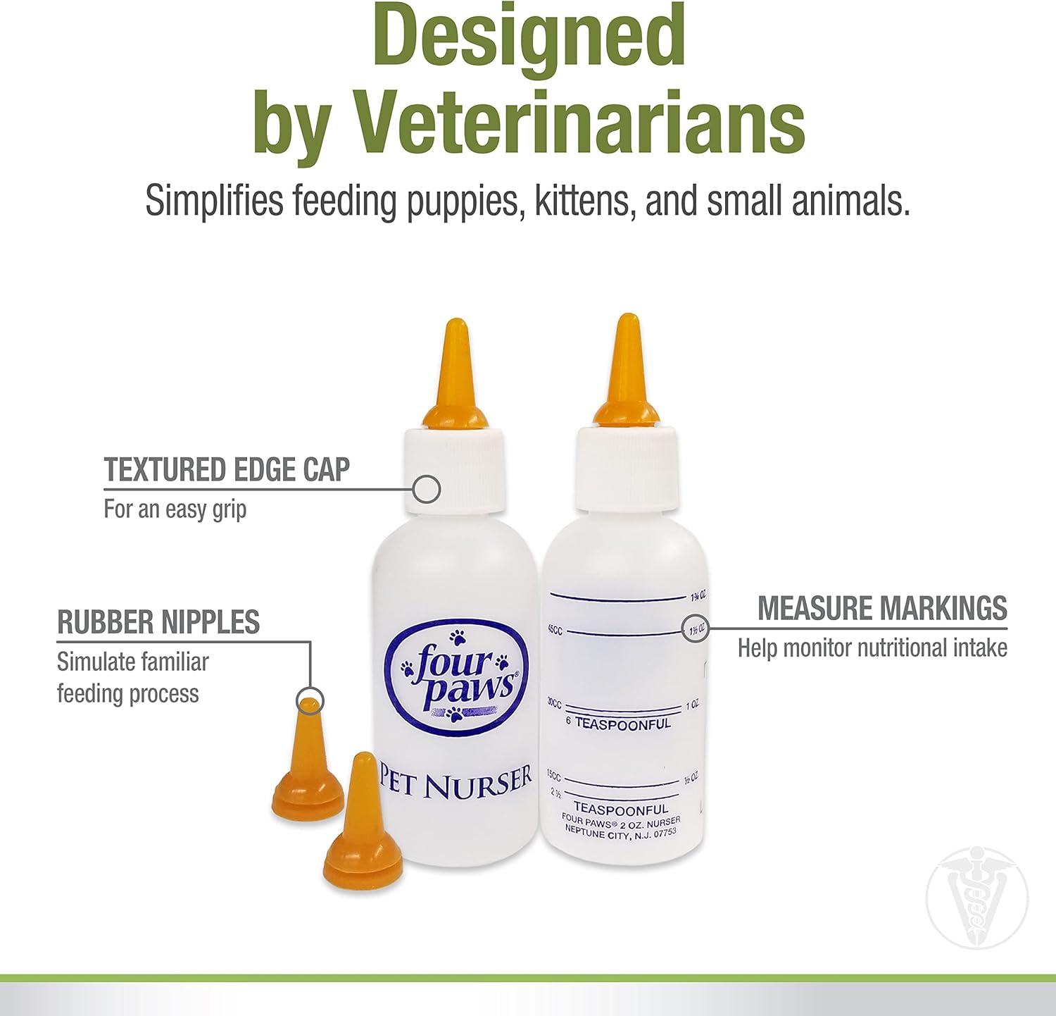 Four Paws has been helping pet parents and four-legged family members flourish together for over 50 years. Driven by the passion to keep our furry best friends thriving happily, Healthy Promise supplements and healing & care products help provide our pets a healthy, active, and fulfilling life. Designed by veterinarians, the Healthy Promise Pet Nurser Bottles aid in nursing puppies, kittens and other newborn pets. Each pet feeding bottle features pure rubber nipples to simulate a familiar maternal nursing process and includes measurement markings to help monitor nutritional intake. These pet nursing bottles are BPA free and latex free. Plus, they’re dishwasher safe when placed on the top rack. Add Healthy Promise pet healing & care products to your furry friendโ€™s routine!